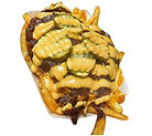 BED OF FRIES, DOUBLE SMASHED PATTIES, 2 AMERICAN CHEESES, CARAMELIZED ONIONS, PICKLES, RR SMASH SAUCE